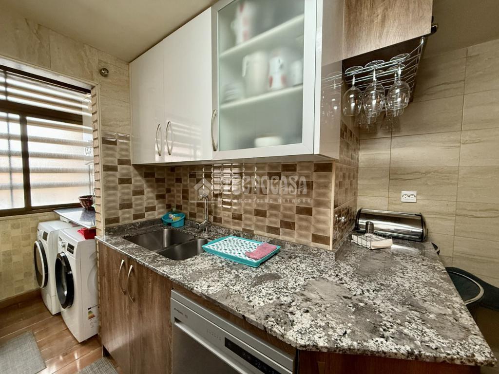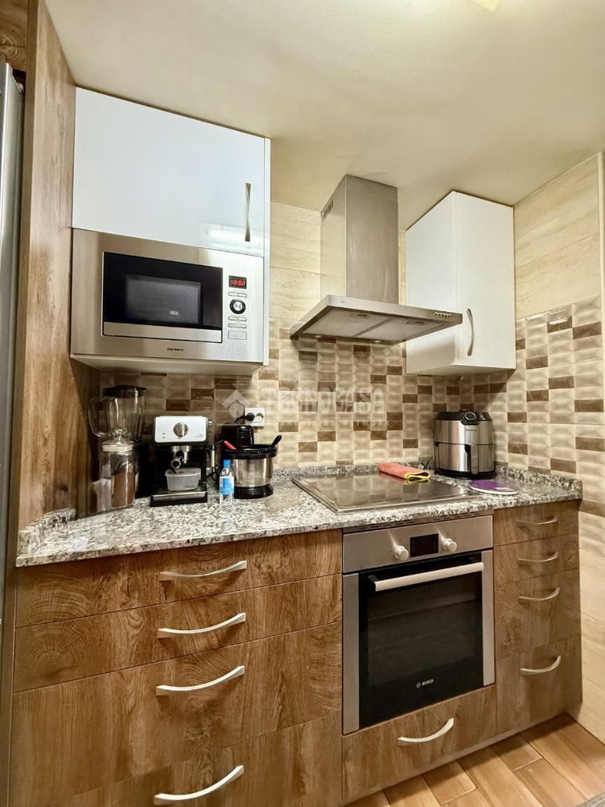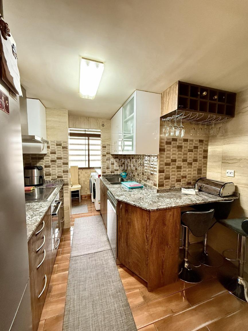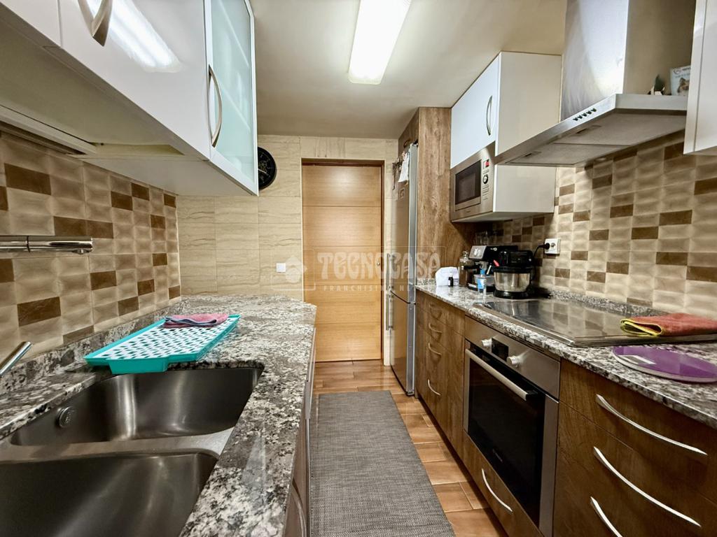 La vivienda cuenta con un amplio y luminoso salón-comedor con salida a terraza, ideal para disfrutar del exterior. La cocina, totalmente equipada y amueblada por ambos lados, dispone de acceso a una segunda terraza, aportando funcionalidad y comodidad.
